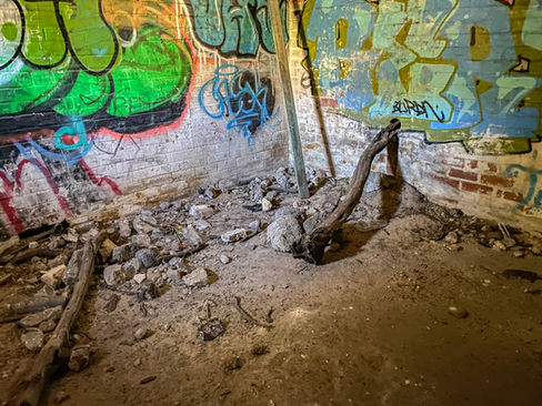 The bunker is constructed with double-bricked walls and concrete. A number of open brick windows allow for ventilation and to provide low level observation. The inside walls have been covered with graffiti, with the earliest date scratched into the entrance doors dated 19 June 1949.